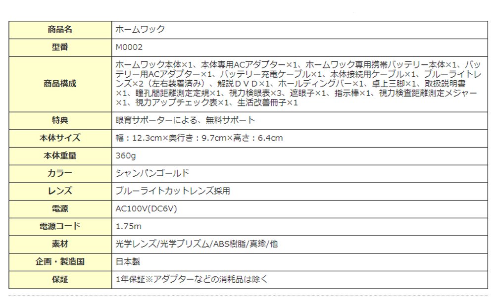 Home wac body × 1, body only AC adapter × 1, home wack dedicated rechargeable battery body × 1, rechargeable battery case × 1, rechargeable battery only AC adapter × 1, body connection cable × 1, blue light lens × 2