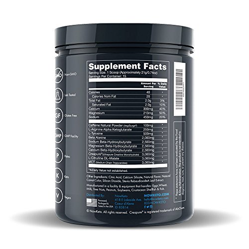 -. Title : NowKeto KetoENERGY w/ MCT Powder (Medium Chain Triglyceride) & BHB (Beta Hydroxybutrate Salts) - Keto Diet Friendly - Helps Elevate Ketone Levels, Pre-Workout Ketosis Formula, for the Ketogenic Diet