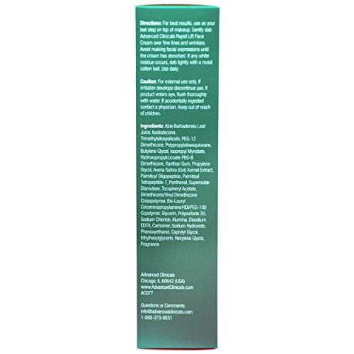 -. Title : Advanced Clinicals Instant Wrinkle Tightening Cream. Targets and improves the look of sagging skin, dryness, aging, tired skin, wrinkles, and fine lines. Oat Extract, Vitamin E, and Aloe Vera. 2oz