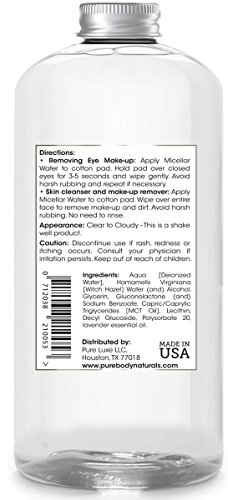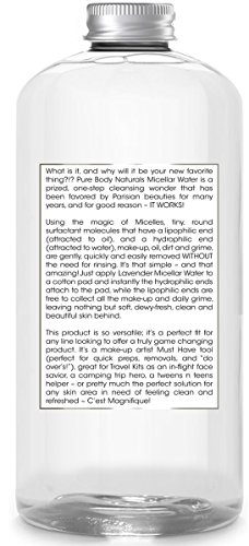 -. Feature : 100% NATURAL LAVENDER MICELLAR WATER - Pure body Naturals micellar water is a fantastic Makeup remover, Skin Cleanser, Moisturizer and Nourisher making our micellar water incredibly versatile and convenient product to use as a powerful and effective makeup remover, or simply use to clean, soothe and refresh the skin. No chemicals or nasties! Just pure and natural micellar water making for the best treatment for your skin. / POWERFUL MAKEUP REMOVAL - Perfect for quick removal of even the most stubborn makeup, including around the eye area or overall foundation. With no alcohol or chemicals, our micellar water will soothe instead of sting. Our micellar water does not require rinsing so simply apply and watch the makeup slide off your face! / CLEANSING AND HYDRATING - Gentle and natural cleanser as the micelles in this formula lift away oil, dirt and debris to leave the skin feeling clean without irritation. This refreshing micellar water will moisturize and hydrate your skin giving nourishment and youthfulness to your complexion. Great for on-the-go use, application is quick and simple, simply saturate cotton rounds and apply in gentle, sweeping motions across the skin. No water or rinsing required / NATURALLY SOOTHING - Non-natural or synthetic makeup removers and face wash products can dry out the skin and leave it feeling irritated, but not ours! Made with all-natural ingredients, Pure Body Naturals Micellar Water is perfect for skin with Lavender, Cucumber, Sage and Calendula extracts, your skin will be left feeling soothed with just a single use. / TRY IT RISK FREE: With thousands of satisfied customers and a long line of best-selling products, we're eager for you to join the Pure Body Naturals family! We promise that the benefits of our micellar water aren't too good to be true. But if you need a little extra assurance, each purchase comes with our money back guarantee! If for any reason this isn't the micellar water you've tried or you don't see jaw-dropping results, you can return it for a full refund.