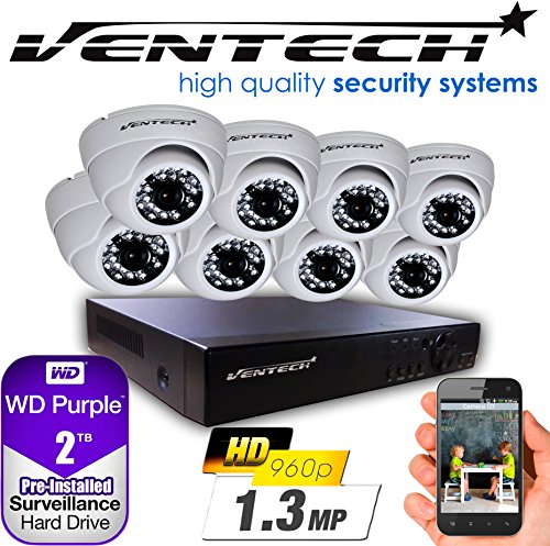 -. Title : VENTECH AHD Security Camera System 8CH DVR 1080 Kit with 8 AHD Dome CCTV Cameras Outdoor(1.3MP) 2TB H-Drive, Easy Remote Smartphone Access,100ft Night Vision