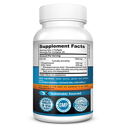 HEART HEALTHY OMEGA-3'S AND ANTIOXIDANTS: Our Krill Oil is packed with EPA and DHA omega-3's, as well as essential phospholipids, and astaxanthin (which is a natural powerful antioxidant). Omega-3's have been shown to promote cardiovascular health and brain health and cognition, and have been shown to help fight inflammation, since EPA and DHA are anti-inflammatory compounds.