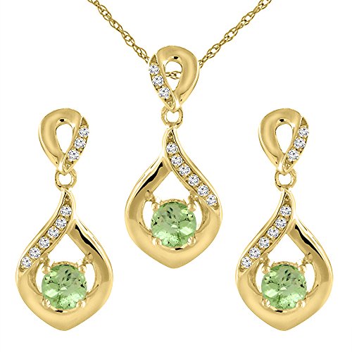 -. Title : 14K Yellow Gold Natural Peridot Earrings and Pendant Set with Diamond Accents Round 4 mm