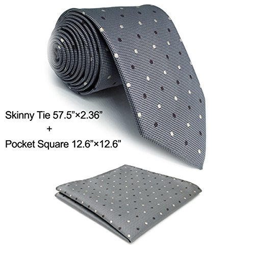 | ShlaxWing New Dotty Grey Neckties Ties For Men Business Classic XL Slim 63" 2.35" |