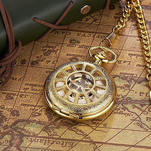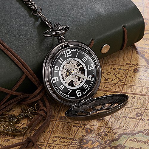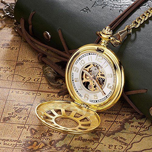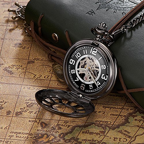 -. Title : OUYAWEI Sailors Series Fob Watch Hollow Dial Skeleton Case Mechanical Hand-wind Pocket Watch