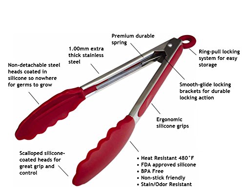 Studio : Y2 Publisher : Y2 Product Description - Food Grade Silicone, 100% FDA Compliance, BPA Free. - Heat Resistant to 480°F. - 403 Stainless Steel Handles, 6mm Thick, No Bending, Breaking or Rusting. - Ergonomically Designed Silicone Grips on the Handles. - Dishwasher safe, Save Space. Package Include: 1 * 12' Tong - Perfect for Grilling to Keep your Hands Away From the Heat 1 * 9' Tong - Great all-rounder for Cooking and Serving 0