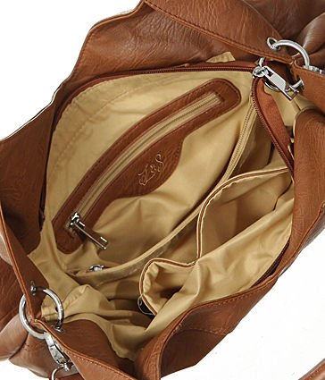 -. Feature : 3/4 zipper closure - Measures approx. 10.5'' Height, 14.5'' Length, 5.5'' Width / Faux leather - Silver tone metal / 2 exterior pockets - Lining: fabric / 3 pockets inside - One of the pockets is sized to hold a cell phone / Strap: 12'' drop - Additional attachable strap: adjustable 22'' drop