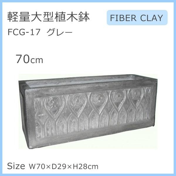 ファイバーグラスに土を含ませ乾燥させた植木鉢です。見た目は重厚感がありながらも軽量なため、扱いやすい大型植木鉢です。 製造国:中国 素材・材質:ファイバーグラス、土 商品サイズ:W70×D29×H28cm 重量:9000g ※サプライヤー直送品 ご注文後3~4営業日後の出荷となります【商品名】軽量大型植木鉢 FCG-17 グレー 70cm