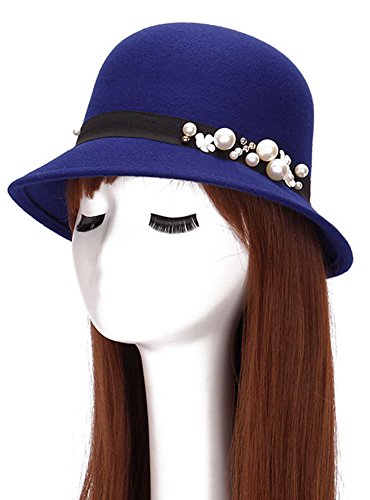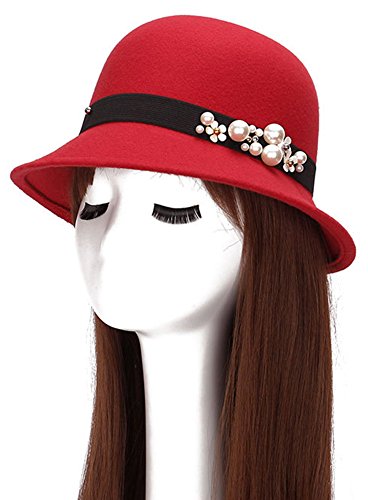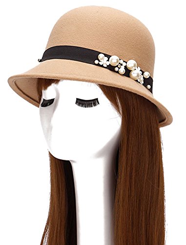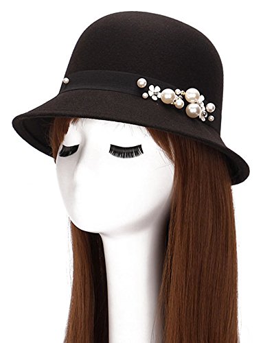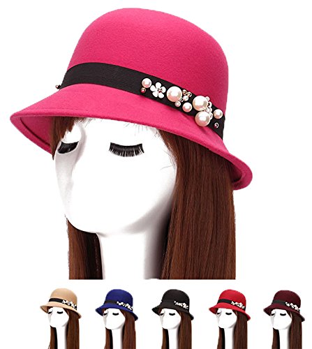 | (Roffatide)/Accessories/Hats/DIRECT FROM USA/Roffatide Womens Woolen Pearl Flowers Bucket Hat Cloche Top Hat Winter Fedora Bowler Hat 6 Colors |