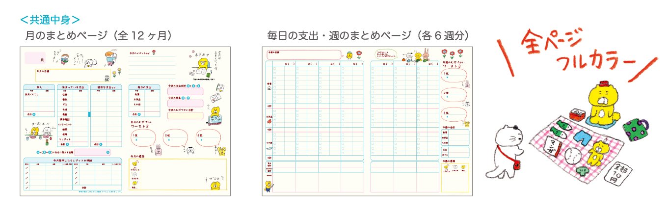 I had never put a household account book nearly, but I purchased this household account book as a result of gathering various information as I thought to start by being recommended by my husband. Every third day I am continuing to the cute illustration and intuitive content even by me! Where you dare to improve, I hope the item "savings" is on the page every month. Also I would like to fill in the remaining amount from the previous week at the beginning of every week.