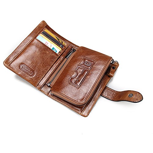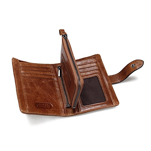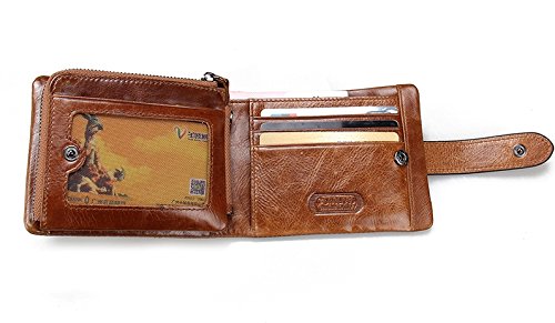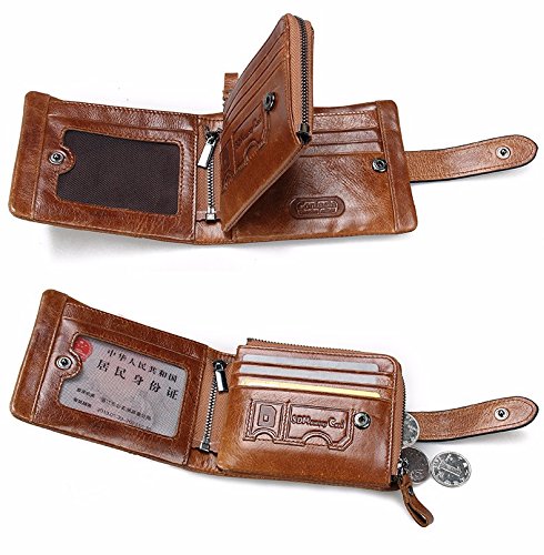 -. Feature : Material:echt Leder / a remove zipper pocket from main wallet / Bifold Wallet with a trifold / Snap button closure