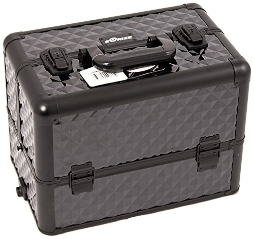 Craft Accents 6-Tiers Tray Professional Aluminum Cosmetic Makeup Case, All Black Diamond Pattern, 176 Ounce
