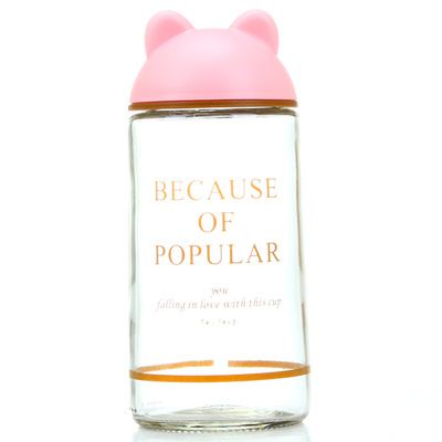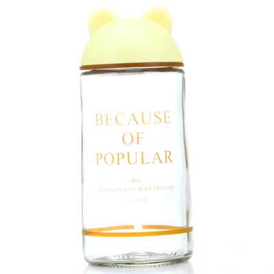| Product Description | Bear glass 360ml, to shape the Cubs head showing a different cover, made using food grade PP lid, the cup body is made of food-grade glass, simple shapes, crystal clear bottle, natural refined rounded contours production process, smooth cup, perfect workmanship, rounded and smooth, thickened wall buckle more practical, mug transparent as crystal, crystal clear, its walls smooth as silk, not bacteria, health and environmental protection. Fashionable mug lid because the Cubs head to do, leaving the cup looks simple and clean to stay Meng interesting. |