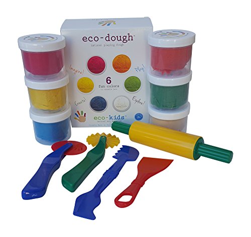 1 box eco-kids eco-dough; 6 fun colors; in 4 ounce screw cap reusable jars
