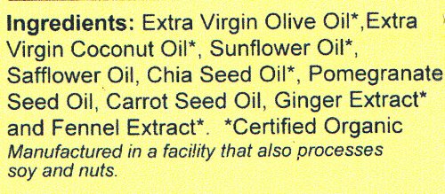 -. Feature : A finishing oil for salad dressings dips or drizzling / Made with Extra-Virgin Olive Oil, Coconut Oil, pomegranate, and carrot seed oil / Great for your heart and rich in Omega and Omega-3 fatty acids / USDA Organic