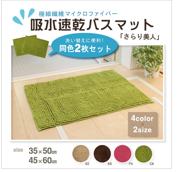 【商品名】バスマット 吸水速乾 洗える 無地 マイクロファイバー 『さらり美人』 ピンク 約35×50cm 2枚組