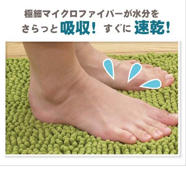 シンプルな無地のバスマットです。パイルの直径6.5mmと太く、長さを15mmと短くし、密度を上げ、パイルが立つように仕上げました。踏んで頂いた時の心地よさ、ボリューム感にこだわった逸品です。素材にはマイクロファイバーを使用していますので驚異的な吸水力、優れた速乾性・抜群の耐久性があります。裏にはすべり止め加工を施しています。ご家庭の洗濯機で洗えます(ネット使用)ので、清潔にご使用頂けます。