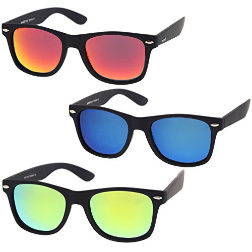 DetailsBold and iconic, these large classic horn rimmed sunglasses feature stunning colored mirror lenses and metal rivet details. Complete with stylishly wide arms and a rubberized finish, this versatile style can worn anywhere from a day at the beach to outdoor parties by the pool. This zeroUV exclusive product is made from a plastic based frame, metal hinges, and 100% UV protected reflective flash mirror lenses.