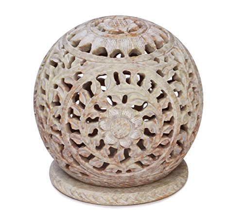 SUPER SALE on SouvNear Soapstone Tealight Holder with Flower Motifs and Intricate Tendril Openwork - Decorative Home Decor Centrepiece for Party Lights