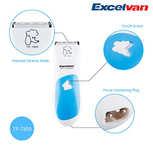 Excelvan Rechargeable Pet Dog Cat Electric Hair Grooming Shaver Razor Clipper Trimmer, Blue