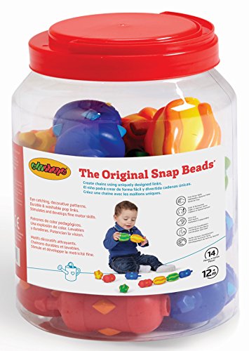 Colorful and deeply textured snap together beads with pronounced sensory bumps. Features an easy release pressure, suitable for ages 1 year and older. Comes in a re-usable jar.
