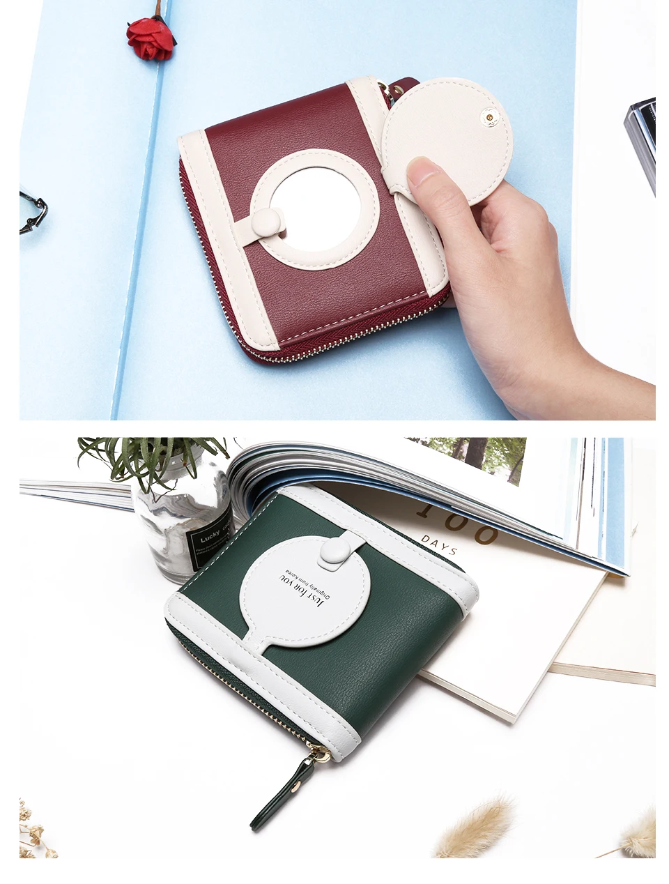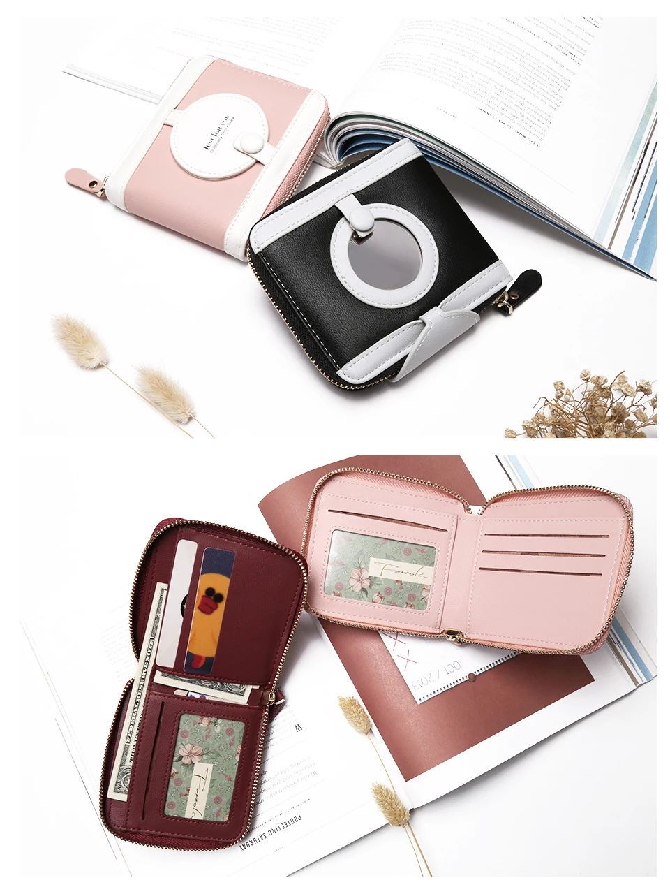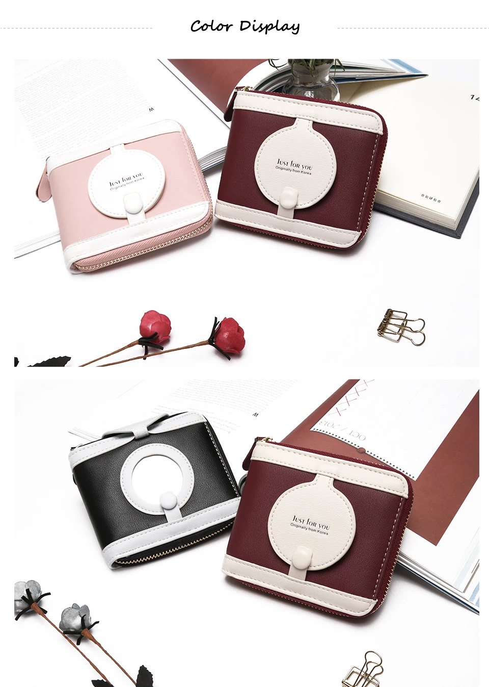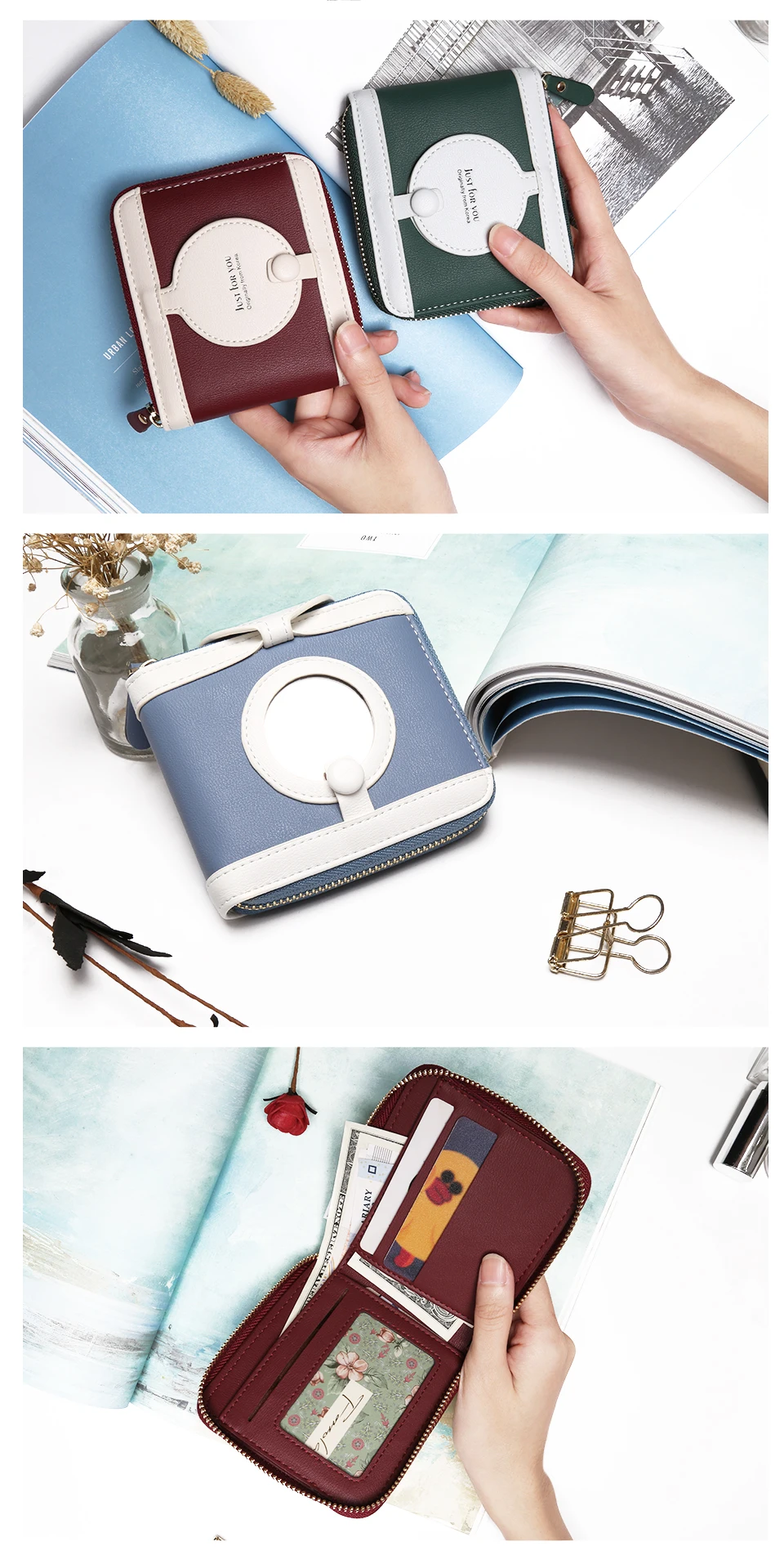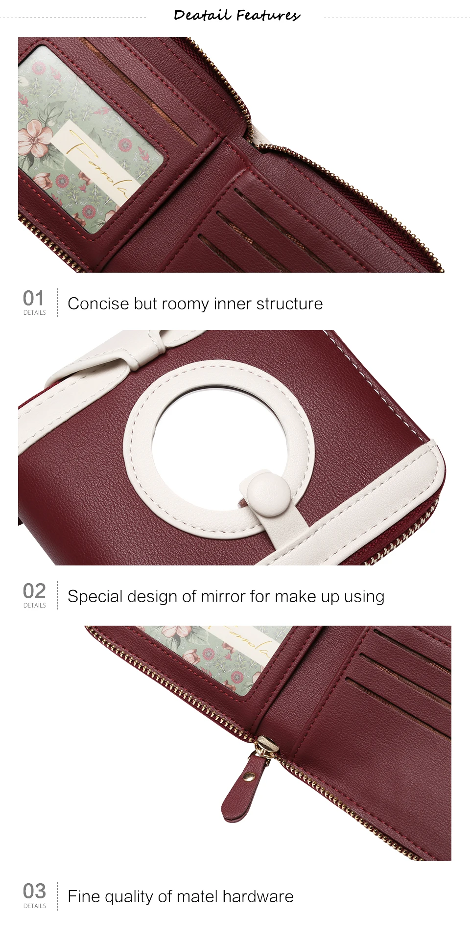 Interior:Interior Slot Pocket,Coin Pocket,Interior Zipper Pocket,Card Holder,Photo Holder,Note Compartment