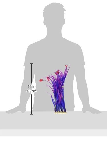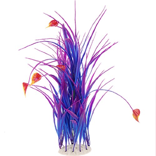 Jardin Plastic Fish Tank Plant with Ceramic Base, 16.5-Inch High, Blue Purple