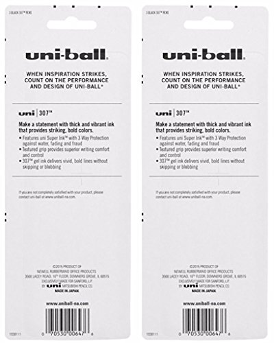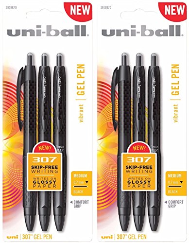 -. Title : Uni-Ball 307 Gel Pens, Medium Point, Pack of 6 Pens, Black Ink (1919870)