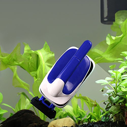 Fantastic Algae Scraper Humanized handle design can save your strength when cleaning the aquarium. The strong magnetic force can clean inside by wiping the outside brush without get wet your hand. Floating design avoids lost magnets on the bottom of your aquarium and makes it convenient for use. Double-duty: wipe the surface of the fish tank without the detachable blade and weed out algaes with blade.