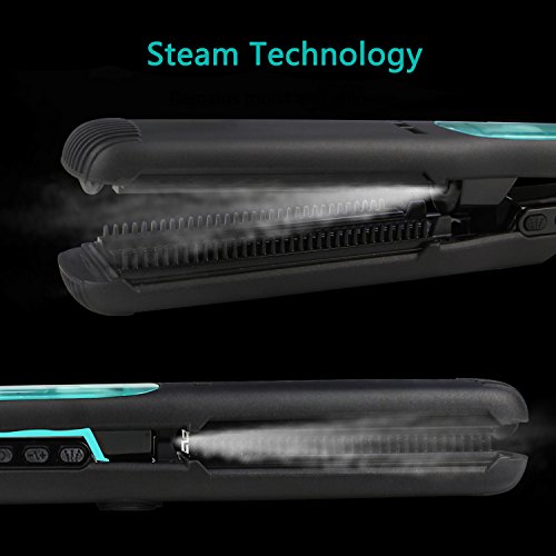 STEAM FLAT IRON HAIR STRAIGHTENER, PROFESSIONAL SALON FLAT IRON WITH 5D HEATING TEETH, LCD DISPLAY, DUAL VOLTAGE, 1-INCH BY MIBOTE