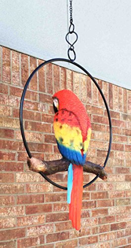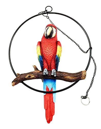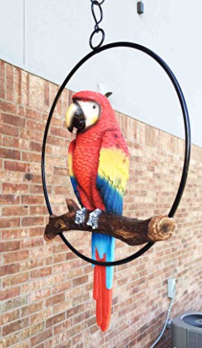 -. Brand : Gifts & Decor -. Color : Multi Colored -. EAN : 0640823554283 -. Feature : This beautiful sculpture is 13.5" tal overall with the parrot alone being 10" tall. It is 3" deep and the branch that the parrot sits on is 8" in length. The ring diameter is 9.5" and the chain is 17" long. These measurements are approximate. / The sculpture is made of designer composite resin, hand painted and polished. Color Tone may vary -. Label : Gifts & Decor -. Manufacturer : Gifts & Decor -. ProductGroup : Lawn & Patio -. ProductTypeName : OUTDOOR_LIVING -. Publisher : Gifts & Decor -. Studio : Gifts & Decor -. Title : Patio Home & Garden Hanging Scarlet Macaw Parrot Perching on Branch In Metal Round Ring Sculpture For Nature Lovers Tropical Bird Collectors -. UPC : 640823554283
