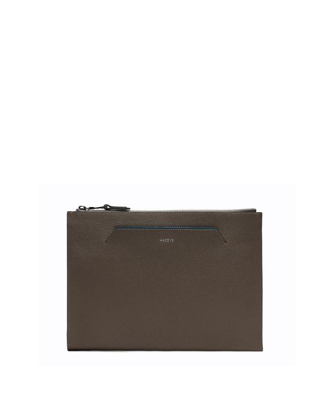 [HAZZYS ACC] [EDGE POINT] 다크 베이지 컬러 라인 배색 가죽 스몰 클러치백