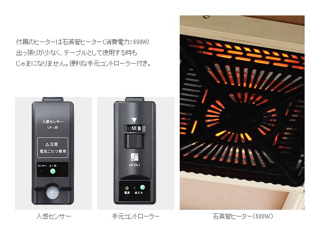 薄型石英管ヒーター(600W・人感センサー・手元コントローラー式)