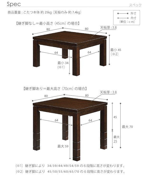 幅80x奥行80x高さ70(45/50/55/60/65)cm