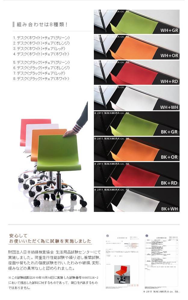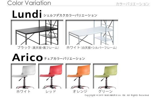 カラー:デスク-ブラック・ホワイト、チェア-ホワイト・レッド・オレンジ・グリーン