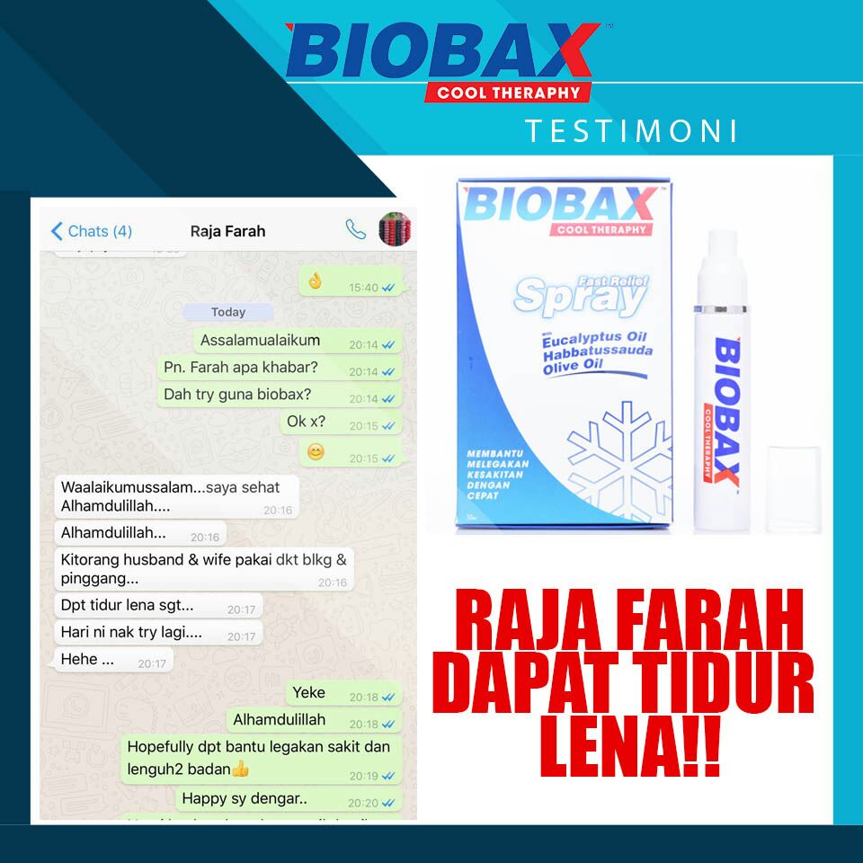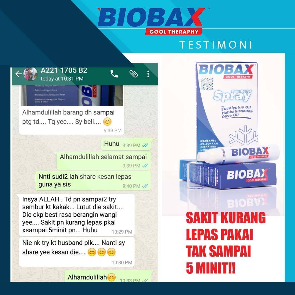 Biobax Cool Therapy merupakan satu produk spray terapi untuk mengurangkan sakit belakang dan sakit pinggang terutamanya untuk ibu yang sedang mengandung dan untuk ibu dan ayah kita di kampung yang sering mengadu sakit.