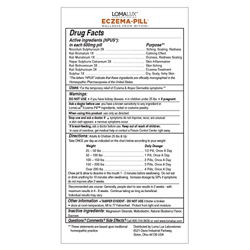 As Eczema begins internally where topical products can't penetrate, why use just a band aid? WE TARGET THE TRUE SOURCE of Eczema for clear, itch free skin from within. With just 1 daily oral dose, Eczema Pill has 5 powerful ALL NATURAL MINERAL INGREDIENTS TO HELP CLEAR SKIN FROM THE INSIDE OUT - by gently stimulating your body's own recovery response. Eczema Pill works internally, JUST LIKE A VITAMIN for CLEAR, ITCH FREE SKIN. Loma Lux's dermatologist founder developed Eczema Pill as a NATURAL TREATMENT for his own patients. After extensive research and testing, he developed this exclusive natural mineral formulation that has helped thousands upon thousands of eczema sufferers for over 20 years. USED REGULARLY, ECZEMA PILL HELPS PREVENT FUTURE RECURRENCES - for clear, itch free skin day after day.Feature