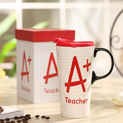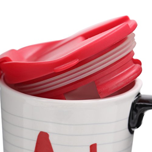 Ceramic body with plastic, spill-proof lid with silicone ring for keeping drinks warm or cold