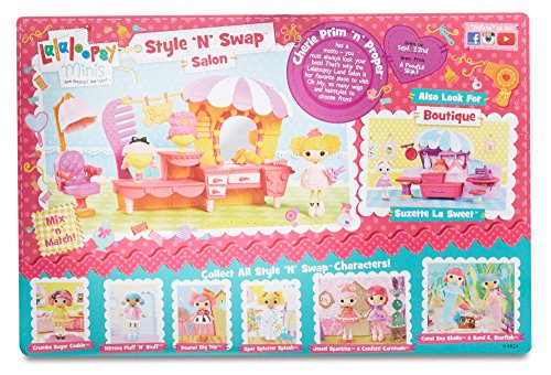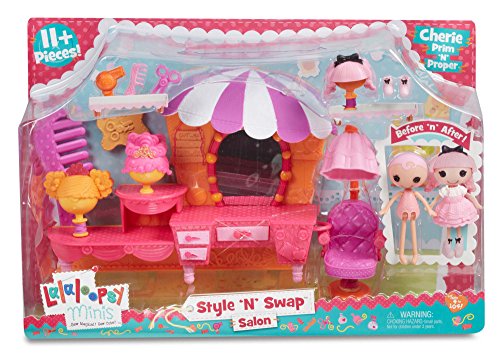 Hold the cuteness of Lalaloopsy in the palm of your hand. Lalaloopsy Minis dolls each come with an adorable pet and fun accessory that fit their personalities. Lalaloopsy Minis Cherie Prim 'N' Proper has a motto — you must always look your best! That’s why the Lalaloopsy Salon is her favorite place to visit. Oh my, so many wigs and hairstyles to choose from! Product Features: • Customize the styles of the Lalaloopsy Minis dolls at the Style ‘N’ Swap Salon! • Display and play with your wigs and outfits in this adorable Lalaloopsy salon playset! • Wigs, fashions and shoes are all removable • Includes a Lalaloopsy Minis Style ‘N’ Swap doll, Cherie Prim ‘N’ Proper, and salon accessories! • Ages: 4-104 yearsFeature
