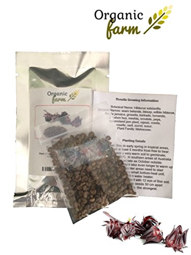 Organic Hibiscus sabdariffa-Roselle Seeds: Non-GMO, 350+ Seeds Packet, Red Big flower by Organic Farm