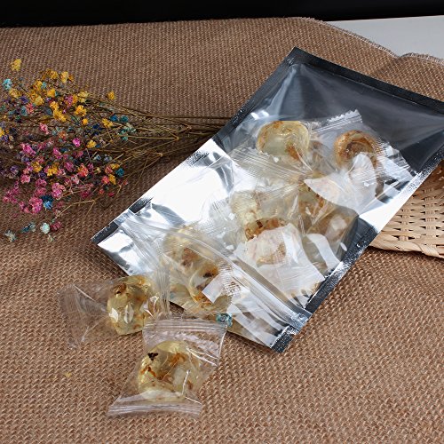 - Front Clear; Back Aluminum Foil / Quality Laminated Material Construction: PET (polyethylene terephthalate) + Aluminum +PE (polyethylene) FDA and USDA compliant. The most inner area is PE, which is perfectly suitable for packaging foods and herbs. Effectively maintains Taste and Scent