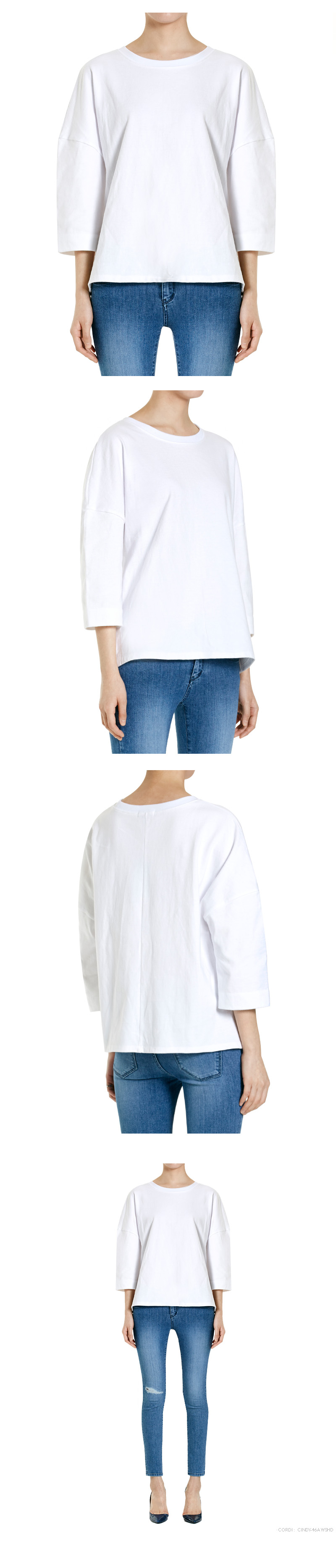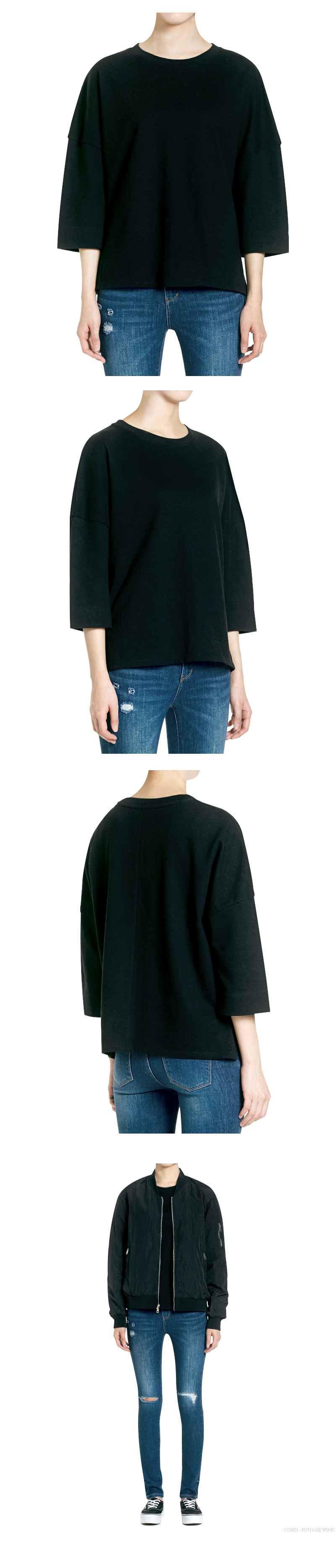 | - 7부소매 저지 티셔츠 - 부담스럽지 않은 미니멀한 디자인 - 소맷단의 넓은 스티치가 스타일에 엣지를 더해줌 - 소매에 다트를 넣어 입체감 있는 실루엣 - COTTON 100% | |