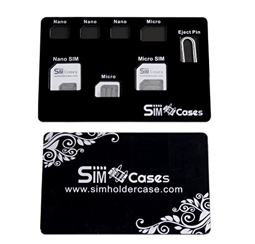 SIMCases® Black SIM Card Storage case with 3 SIM Card Adapters + 1 Iphone Eject Pin Credit Card Style, This is a great accessory for your SIM cards and iPhone pin ! This card holder case will protect your valuable SIM cards from getting damaged or lost !