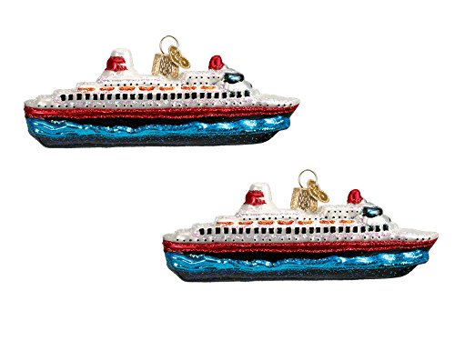 Set of 2 Old World Christmas Cruise Ship Glass Blown Ornament bundled by Maven Gifts