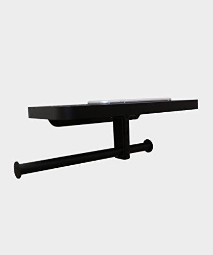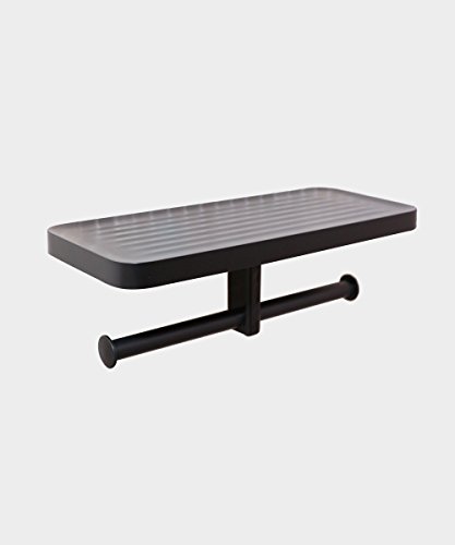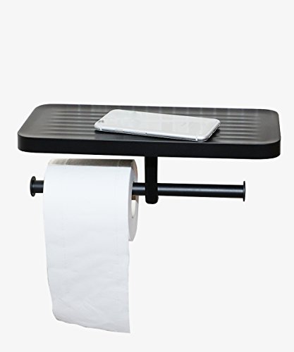 CRW Toilet Paper Tissue Holder Double Roller Hanger with Cell Phone Shelf Rack Dispenser for Bathroom Kitchen Black Wall Mounted C8091