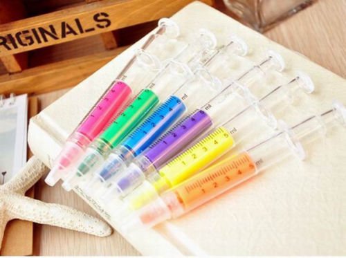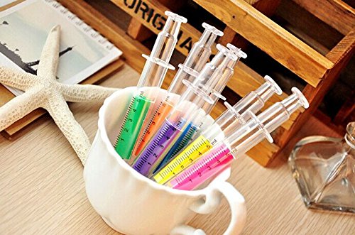 HXYTECH® 12pcs Syringe Highlighter Fluorescent Needle Pen Precision Crossed Stationery Watercolor Pens with 6 Colors