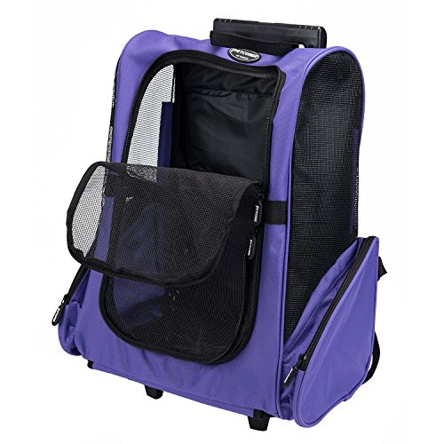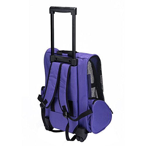 -. Binding : Misc. -. Brand : TOPSOSO -. Color : Purple -. EAN : 0789470588958 -. Feature : Heavy-duty Oxford and PVC mesh. The water resistant pet carrier offers durable performance / Zippered mesh door for protection, comes with side vents for proper ventilation / Includes a telescoping handle (maximum height of 39") and wheels approved for use as a carry-on on most airlines / 20 lbs weight capacity doesn't equal fitting a 20 lb dog if the dog is bigger than the bag -. Label : TOPSOSO -. Manufacturer : TOPSOSO -. MPN : 520278874082PR -. PackageQuantity : 1 -. PartNumber : 520278874082PR -. ProductGroup : Pet Products -. ProductTypeName : PET_SUPPLIES -. Publisher : TOPSOSO -. Studio : TOPSOSO -. Title : TOPSOSO Deluxe Oxford Mesh Pet Dog Travel Carrier Backpack w/ Wheels (Purple) -. UPC : 789470588958