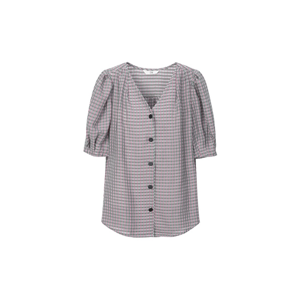 체크 패턴 V넥 블라우스 ITI7ZBL900 그린 (GN)