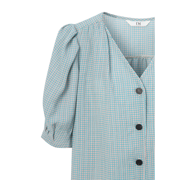 체크 패턴 V넥 블라우스 ITI7ZBL900 민트(MT)