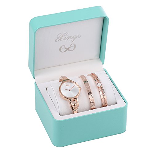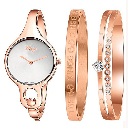 Xinge Womens Rose Gold-Tone Bangle Watch and Bracelet Set XG3678WR1119